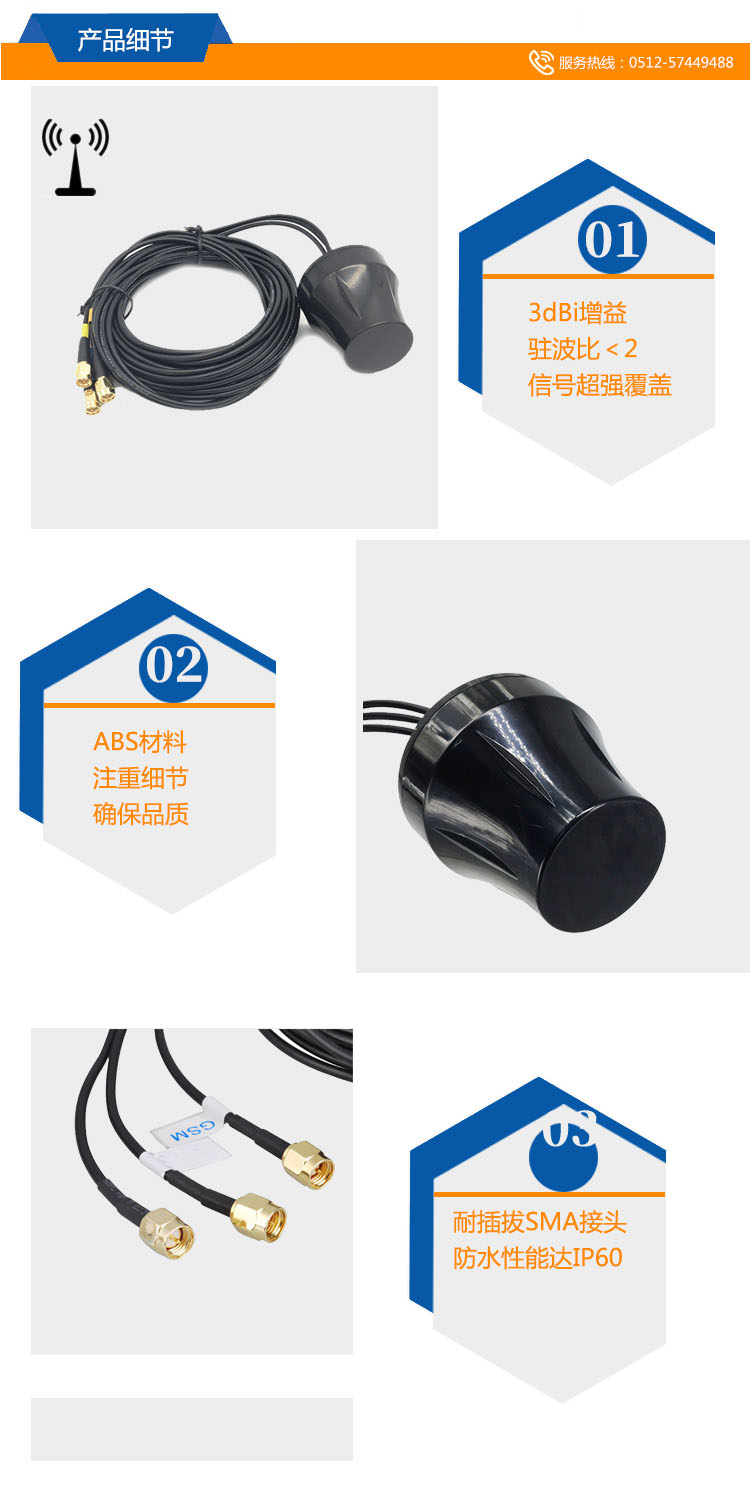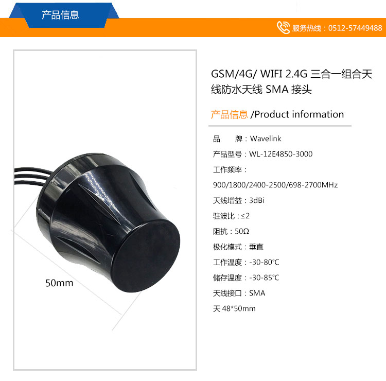 48*50mm GSM/4G/ WIFI 2.4G 三合一組合天線防水天線 SMA接頭