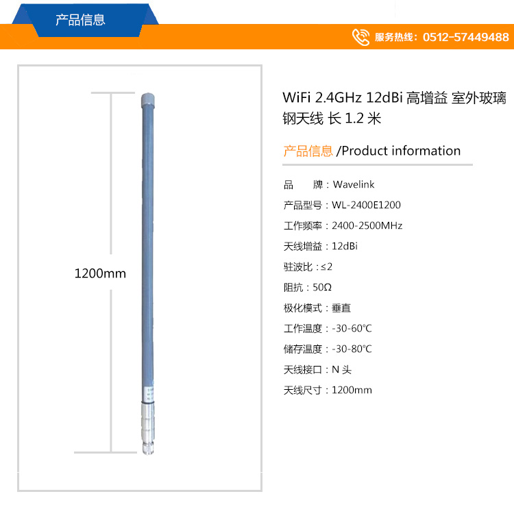 WiFi 2.4GHz 高增益室外玻璃鋼天線20*1200mm