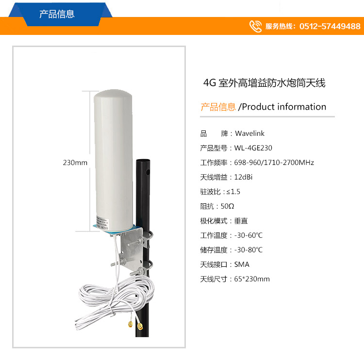 4G天線室外天線 高增益防水炮筒天線 65*230mm