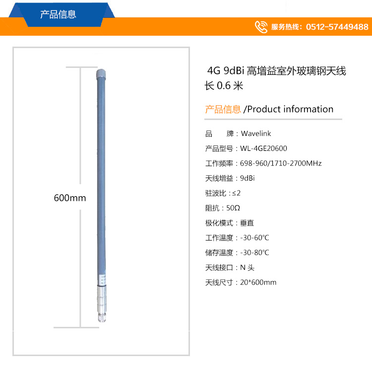 4G天線 9dBi高增益室外玻璃鋼天線 600*20mm