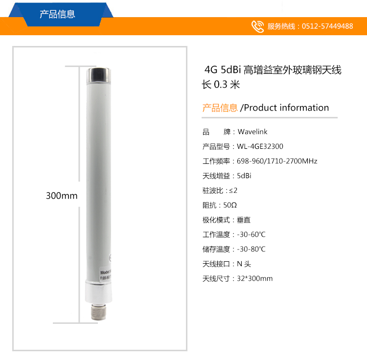 4G 5dBi高增益室外玻璃鋼天線 32*300mm