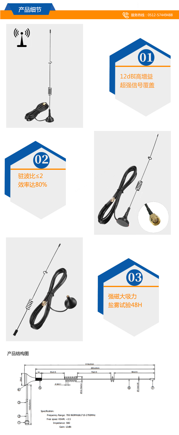 1:12dBi增益
